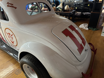All body parts are steel form original stock. It has a 1950 Mercury flathead block, ABA 48-53 and bored out for 4"pistons, Estimated 297 cubic inches. All engine internal parts are new. It if fitted with electric fuel pump, new water pump and hoses, Offenhauser Headers, Johnson tappets, Isky 1016 race cam, three Stromberg carburetors, 3 port manifold, three 3/8th X 4 Harmon Collins Magneto, Three speed transmission, Hildebrand Quick change rear (496) and roll cage. Here's your chance to own a piece of history.